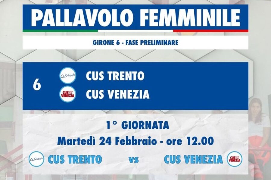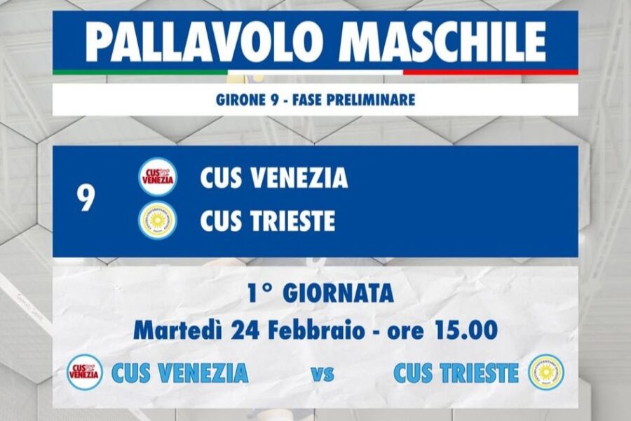 Martedì 24 febbraio prenderà il via il cammino preliminare nei tornei di pallavolo del C.U.S. Venezia verso le fasi finali dei Campionati Nazionali Universitari Primaverili 2026, in programma dal 22 al 31 maggio e organizzati dal C.U.S. Piemonte Orientale, attivo nelle province di Novara, Vercelli e Alessandria.